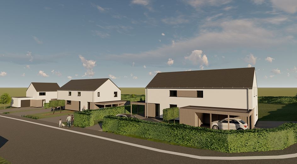 L’ensemble est composé d’une maison 4 façades avec garage, et de 2 x 2 maisons mitoyennes avec carport et rangement poubelles/vélos.